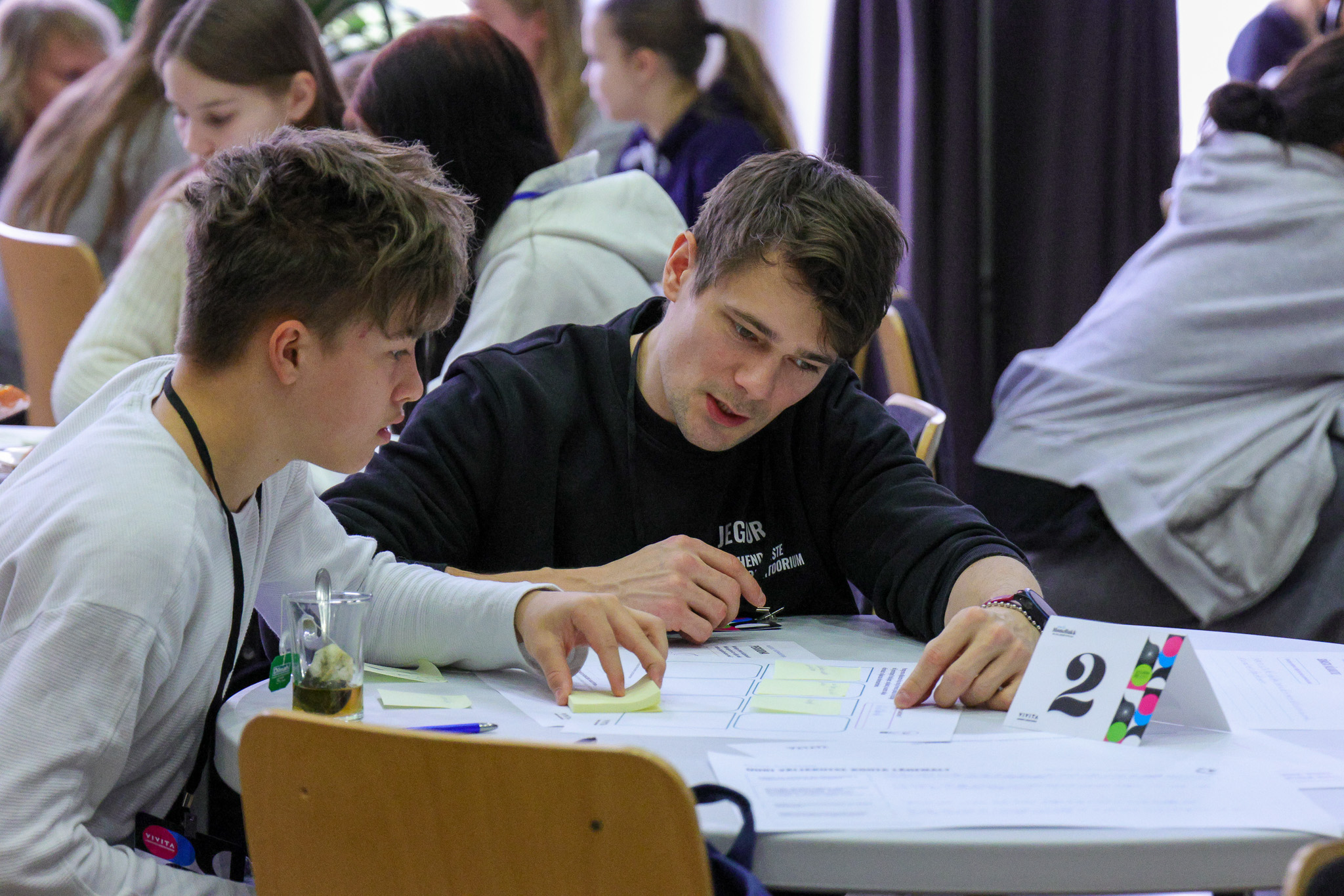 Noorte MõtteHäkil olid mentoritena kaasatud kõigi Lõuna-Eesti maakondlike arenduskeskuste vabaühenduse konsultandid ning Europe Directi kontaktipunktide koordinaatorid. Päeva jooksul aitas noorte ideid mõtestada ja disainmõtlemise protsessi läbida Vivita loovus- ja prototüüpimislabori mentorid. Päeva lõpuks esitleti valminud prototüüpe ja lahendusi žüriile.
